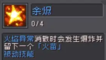 余烬,作为被动技能,进一步提高了火焰术士的输出能力,一方面是当火焰异常消散时,会产生爆炸造成范围伤害,另一方面是爆炸会产生火苗,而火苗可以通过其余技能的释放被加以利用。