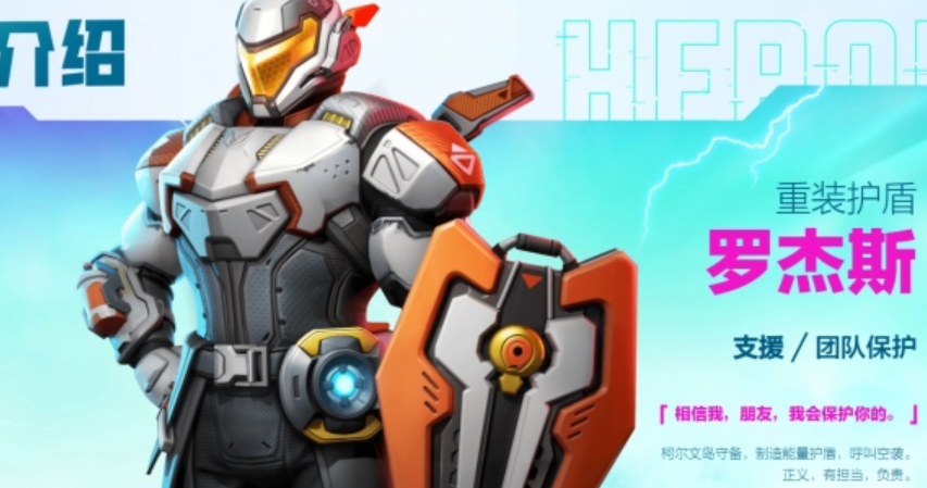 罗杰斯是一个机器人,他可以为队友们带来护盾,在他的技能达到一定能量时他可以释放出能量盾,这个盾可以为队友持续性吸收敌方的技能攻击,所以他是团队中的主要支援型角色,非常有利于掩护队友进行藏身战斗。所以,小编推荐大家搭配给他芬尼 金蝉子 维德。