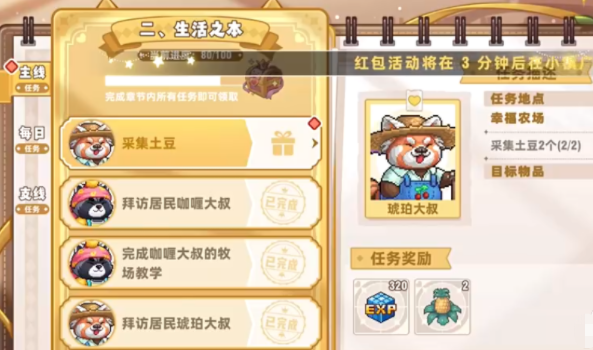 在游戏中各个场景都是需要玩家达到一定等级之后才能解锁,这样可以激励玩家不断完成游戏中的任务,开拓更多的游戏场景,不管农场,牧场还是渔场都可以在游戏中体验到,让玩家能通过游戏感受到悠闲的生活,在这些场景中种植的或者养殖的动物都可以给玩家带来一定的收益,通过这些收益也可以获取更多的动植物种类,是可以激励玩家不断获得收益的一种方式。