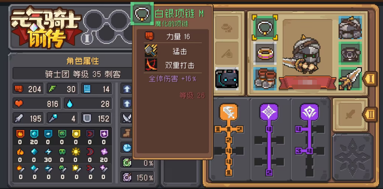 白银项链M:它是绿色品质的饰品,基础属性只有一项,那就是力量,26级的情况下增加了16点力量,可以预见的是,通过后续对其等级的继续提升,这一属性加成还会变得更高,另外它能力中的猛击和双重打击也都是能够吃到力量增益的,所以非常契合需要力量的那些物理职业。