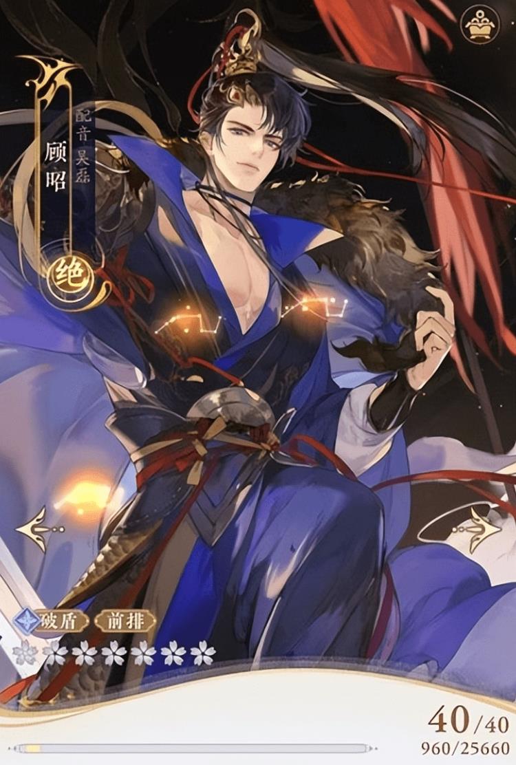 顾昭的形象一直都是一个穿着蓝色衣服,穿着黑色长袍的贵族少年,他的五官棱角分明,是一个很有原则的男人,而且还是一个很有原则的男人,作为一个将军,他的战斗力自然是非常的强,而且他的能力也很特别,他的防御力可以转化为攻击力,让他的杀伤力变得更强。他的大招是群攻,既可以让对手大量失血,还可以破盾,而且他的大招可以吸引敌人的注意力,可以用来嘲讽敌人,让敌人把注意力转移到自己身上,也可以用来保护自己的队友。