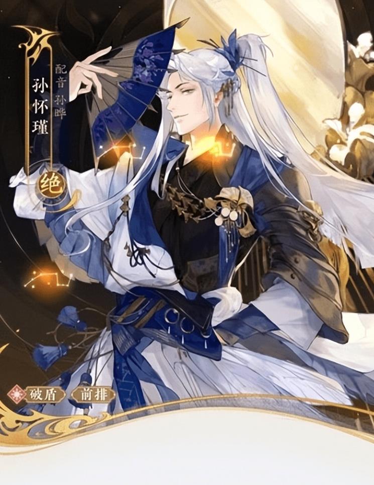 孙怀瑾,这是一张非常吸引人的卡片,任何一个女玩家看到这张卡片都会喜欢,毫无疑问,这张卡片将会成为她们未来的丈夫,同时,这张卡片的功能也非常强大,它可以充当先锋,不但可以破开防御,还可以给队友加血,甚至可以给队友加血。从孙怀瑾的普通攻击说,他不但可以对对手造成大量失血,还可以给队友增加一定的防御力,让自己的队友有更多的机会活下来,九连诀是他的杀手锏,可以破开敌人的盾牌,打出更多的伤害,也可以让队友的暴击率更高,让整个团队的 DPS更高。