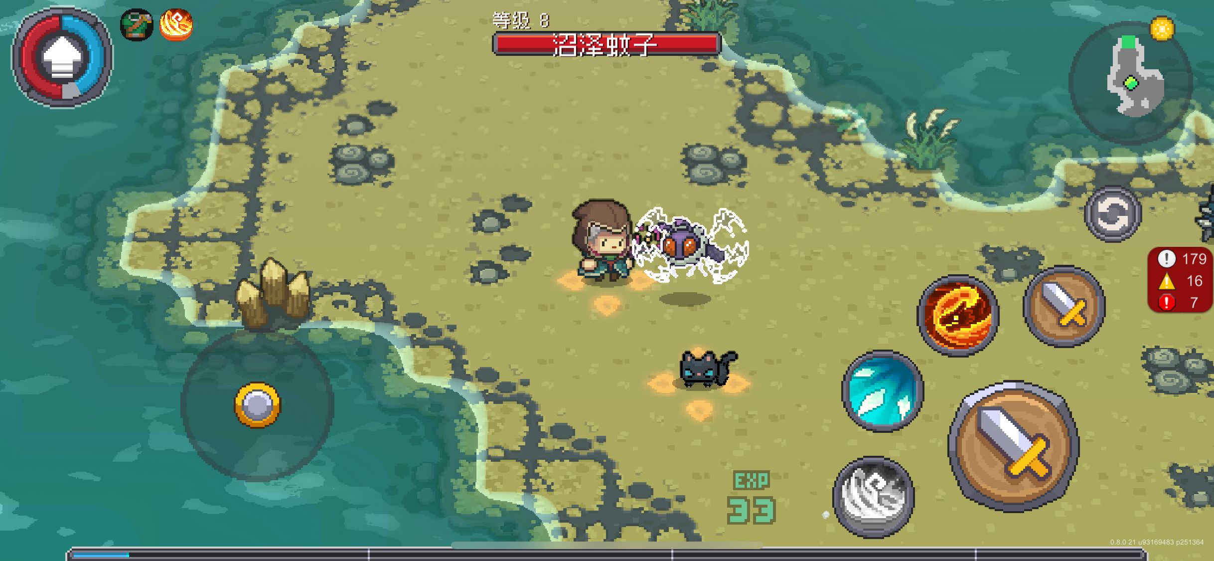 相比它的高超机动性,其攻防属性就要弱很多,攻击玩家的方式也只是采用最简单的撞击和撕咬,不过它实际能打出的伤害非常微小,因此遇到落单的沼泽蚊子时直接用自己的连招硬刚即可,如果觉得不稳妥的话还可以带上培养好的宠物,宠物基本上三拳两脚也能解决掉它。
