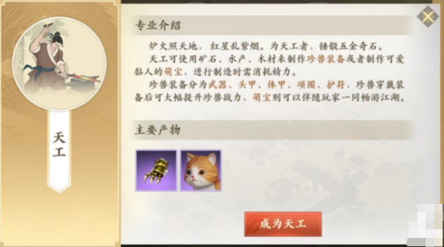 以上就是新天龙八部手游天工怎么样的相关介绍啦,大家现在在游戏中要是想要选择一个比较少见的副职业,其实天工就是比较合适的一个制作类职业啦。