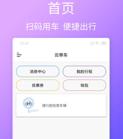 选择方便快捷的软件就要找云单车,扫码用车便捷出行,当小伙伴们下了公交站或者地铁站时已经到达终点,但还有1公里该怎么办呢?使用这款软件借共享单车,轻松解决最后1公里的烦恼,现在该软件加入了提前预约功能,可提前规划行程并预约车辆,该应用使用非常便捷,用车还车只需几秒即可完成。