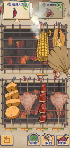 知道卡级的原因之后,就需要对症下药了,大家可以从烧烤摊的经营氛围、顾客给出的评分这两个方面入手进行调整,大家可以理解为给更多的顾客提供美味烧烤是可以有效解决卡级这个问题的。