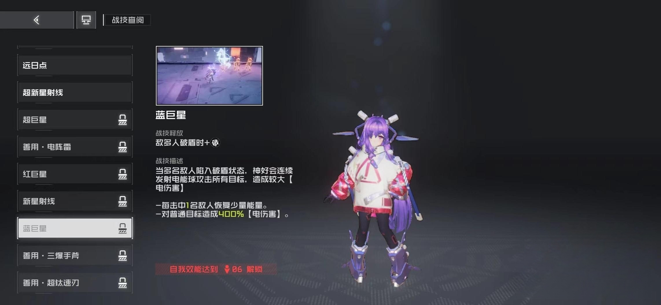 第三个技能则是“蓝巨星”,该技能需要多个敌人陷入被破盾后才能施放,施放后会发射一枚巨大的电能球以此造成大额的AOE伤害,伤害的加成倍率高达400%,算是穆神好压箱底的一个绝招,使用它后还能根据命中的敌人数量来恢复能量,所以该技能施放之后完全不会陷入疲软状态。