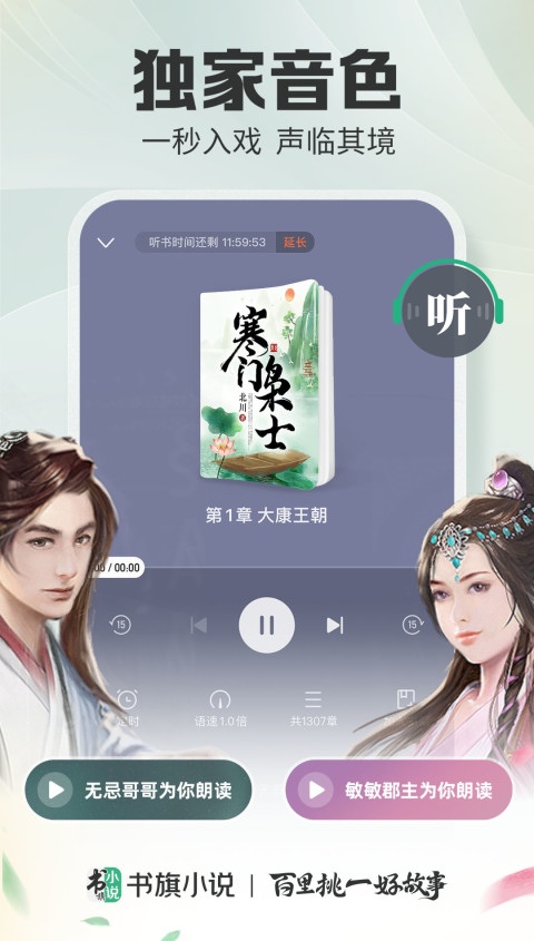 精品书库当中的内容都是挑出来的好故事,在书旗金榜当中你可以看到大家最近都在阅读的小说是什么,各种小说还配有了独家的音色阅读,能够让看小说的你一秒入戏,精彩剧情抢先看。