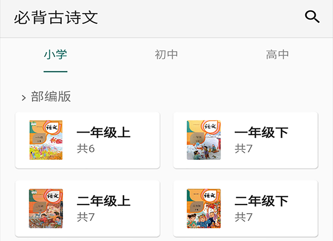 必背古诗文非常适合正在小学阶段的同学,这里有各种年级的上下册古诗词教材注释,帮助小伙伴们在学诗词的同时了解书本的诗词知识点。系统和各种校本课程书籍信息是同步的,学校更换教材平台也会更新,所以小伙伴们可以放心使用,都是最新的内容。