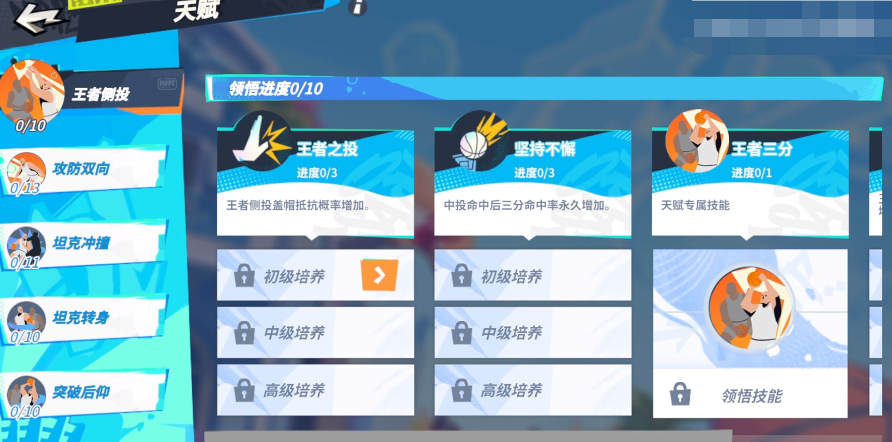 首先技能这块,优先强化的肯定是王者侧投,它毕竟是詹姆斯的主动爆发技,提供的效果也是非常之多,而且只需十次强化就能激活其中的全部效果,其中包括对抗盖帽和三分命中率的加持,并且强化到后面还有不同的花式投篮动作。