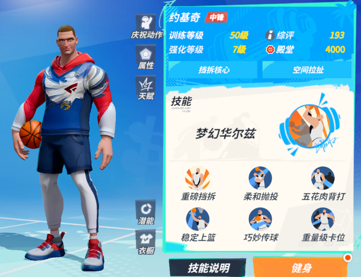 技能方面,他的内线进攻又一次被全方位加强,不仅提供了上篮和抛投方面的加持,而且绝招梦幻华尔兹和小技能五花肉背打还能彼此配合,从而晃得对手晕头转向,此外,其小技能还有挡拆,卡位和传球方面的加成,这些都帮助约基奇成为一个更加团队的存在。