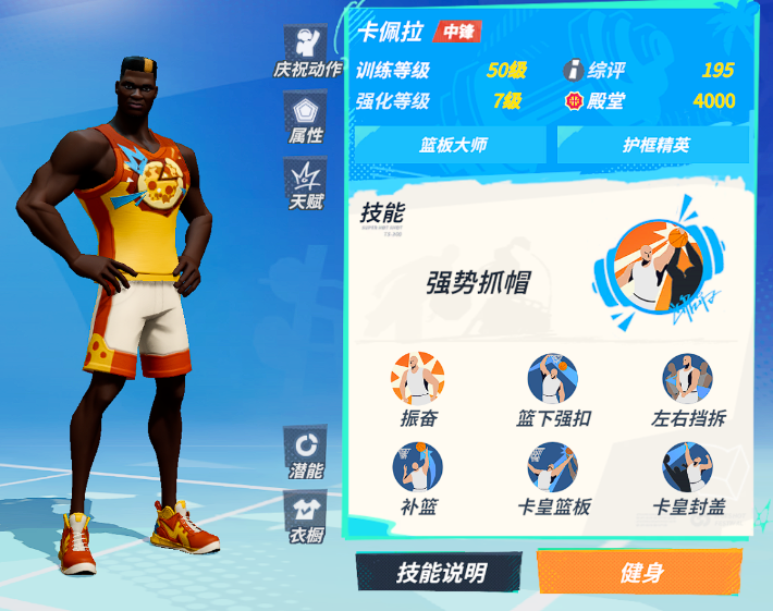 他的小技能本身也有着不俗的威力,其中包括了对篮板和盖帽的双重加持,让他这个蓝领的工作能够精益求精,而篮下强扣和补篮则分别给予了卡佩拉强悍的终结能力与二次进攻能力,最后的一手“左右挡拆”更是令其成为了掩护队友的高手。