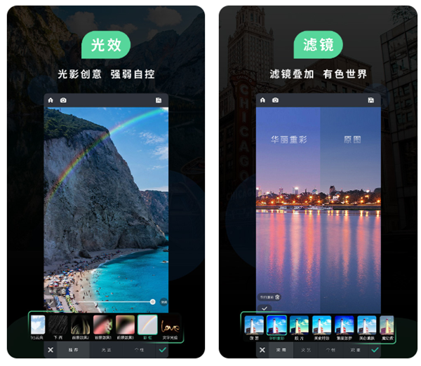 这是一款综合类的手机相机应用,不管是人像、风景、美食还是宠物都能够轻松搞定。软件带有海量的素材和模板供大家自由选择,对于一些不怎么拍照的小伙伴们来说真的是大大的福利。自带的氛围滤镜可以快速帮助我们对照片的色彩进行调节,从而产生出满意的作品。