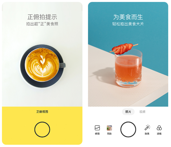 颇为专业的美食拍摄工具,可以说是出去探店、旅游的必备工具之一了。打开相机,对准食物,左滑右滑从丰富的美食滤镜中进行选择,操作就是这么简单。软件还会针对不同的美食类型和场景来向我们推荐拍摄的机位、构图以及角度,“手把手”帮助我们拍摄出好看的探店照片,赶快尝试一下吧。