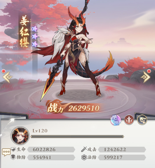 从属性来看,姜红英的攻击非常突出,124W 的数值对比一众攻击职业都算得上名列前茅,而六百万的生命和五十九万的法防也属于中上游的水平,不过物防这块确实低了一些。