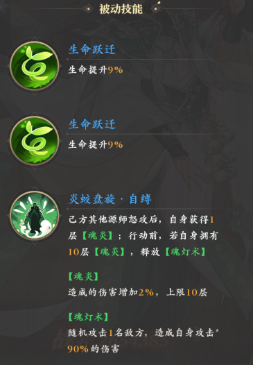 后续激活的“炎蛟盘旋·自缚”更是可以在队友发动怒攻后获得一层魂炎,每层魂炎都可以提供2%增伤,叠满十层后还可以对随机一名敌人造成90%的伤害。