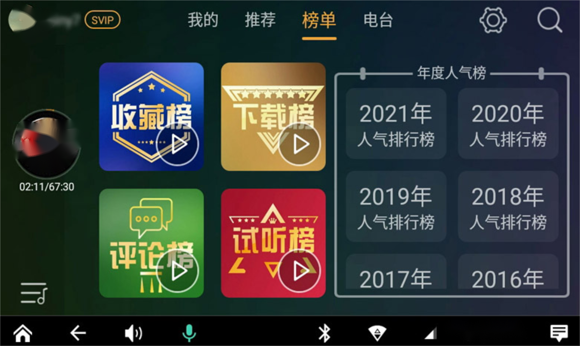 一款车载听歌软件,有着众多的曲目,并且适应汽车长途或者短途听歌使用,作为一款听歌的app也是有着各种曲目,当然还为各位推出了年度榜单,为没有时间细心挑选歌曲的司机用户准备了各种适合路上听的国内外优秀音乐,绝对能让各位在开车的时候享受也能获得一个轻松愉悦的氛围,感兴趣的赶快来下载一个尝试一下吧。