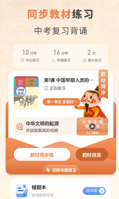 它提供了丰富的题目和多样的教学模式,免费下载使用。通过该应用,学生可以轻松提高学习效率,找到适合自己的历史学习方法,并聆听专业教师的精讲。此外,它收录了中考历史考试的真题集,并由名师进行专题精讲。