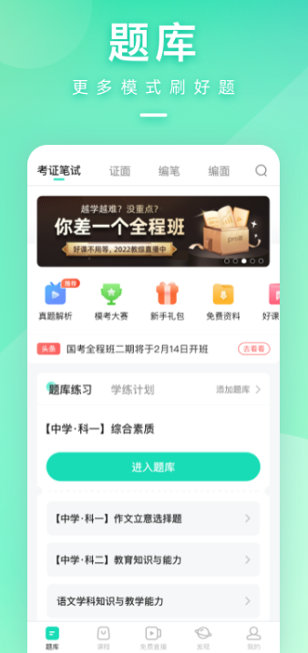 这是一款免费的刷题软件,以历年真题为基础改编的模拟试题和详细解析,为用户提供了丰富的练习资源,帮助用户更好地理解历年出题趋势。它还提供直播课程,用户可以随时观看,了解自己的学习状态,使学习更加有趣且高效。与传统的学习方式相比,更能激发用户的学习兴趣,帮助用户更好地掌握知识。
