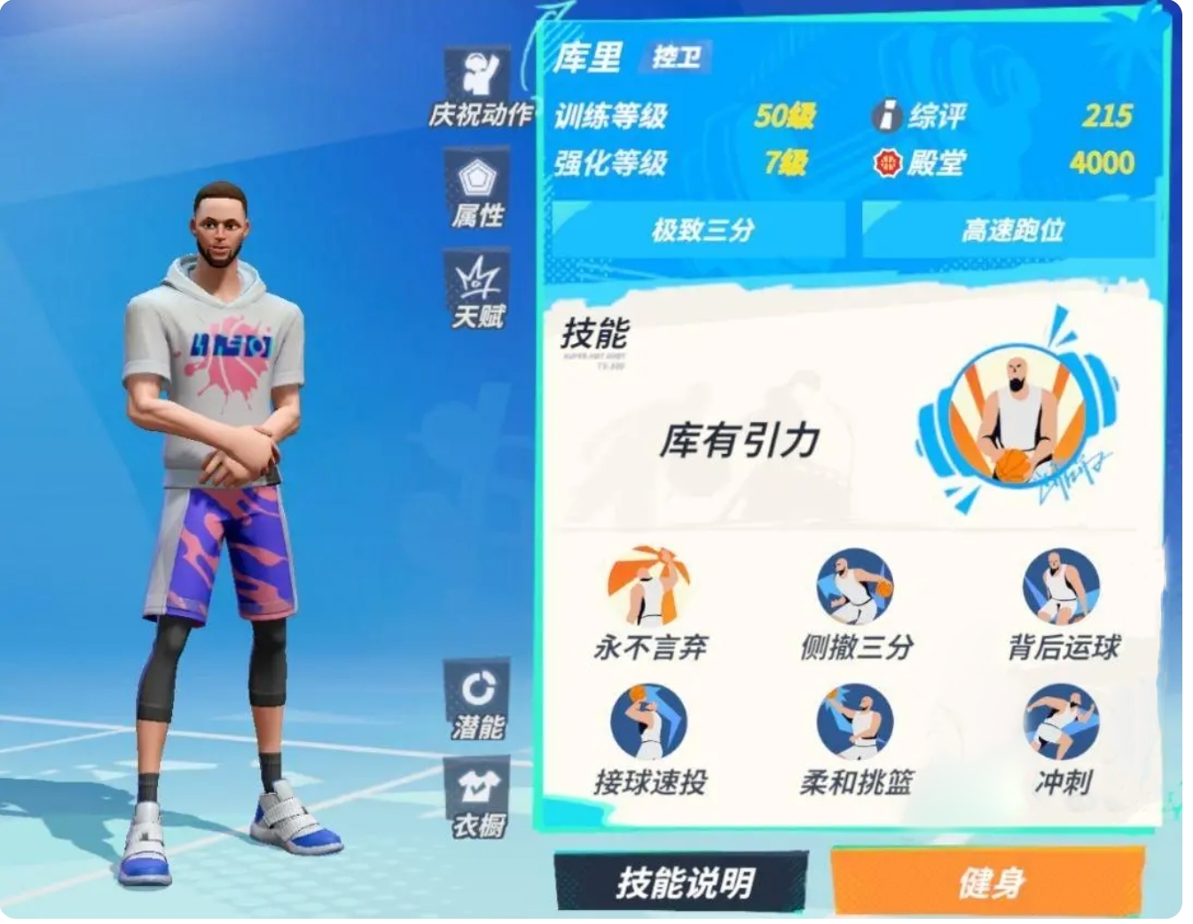 再来就是詹姆斯了,詹姆斯也是一名非常受到玩家们欢迎的球员,他在游戏当中的定位是一名小前锋,但是他同样也是可以胜任3号位的位置的,因为他的能力值是相当出色的,这里推荐一些喜欢打中头寻找节奏的玩家们,那么三号位选择他一定是不错的。