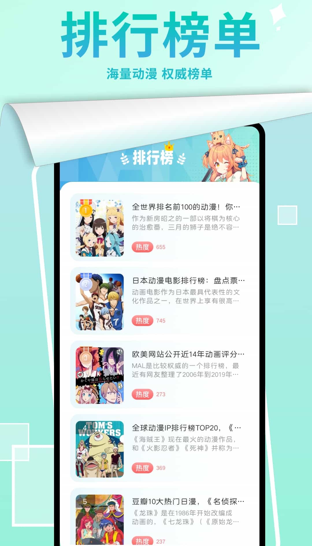 汇聚了非常多热门动漫文本解读,带大家发现那些热门好看的动漫作品,不负好时光,也算是大家宅家追漫必备的APP了,还有动漫趣味猜猜猜的小游戏,只要你阅读的漫画足够多这个小游戏对你来说一点都不是问题。