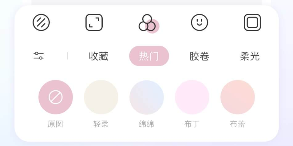 通过下图也能看出来,除了简单的拍摄外,针对人物形象的美化处理功能是非常多的,包括瘦身以及脸蛋的美化,同时还有海量的滤镜让大家去选择,自由的调整图片的效果。