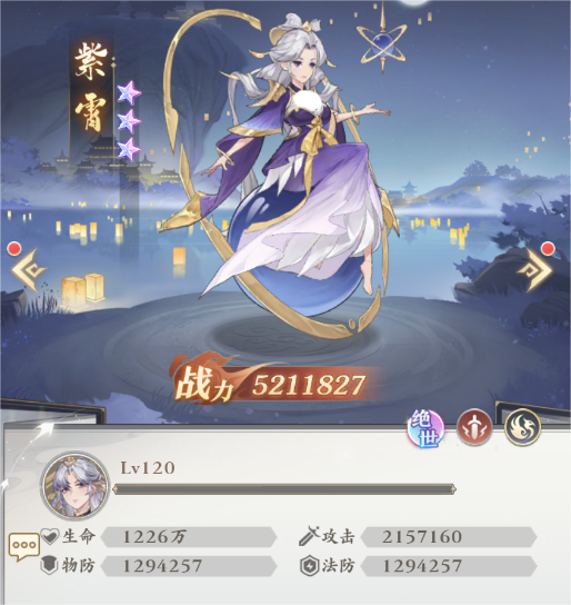紫霄的属性以防御见长,无论是物防还是法防都达到了一个十分不错的水准,快接近130万的数值在攻击职业中是十分罕见的,除此之外,她的生命和攻击也可圈可点,能够完美无瑕的应付承伤和输出两方面的职责。
