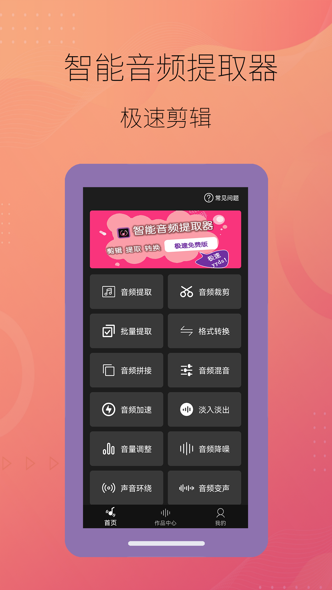 这款APP当中的音频提取编辑功能有助于大家制作出各种优质的背景音,还能够进行音频的剪切拼接键,降速降噪,是非常基础的音频剪辑工具,甚至能够为大家制作各种各样视频的背景音乐以及进行视频的配音以及合成,