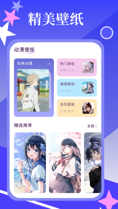 想要拥有会动起来的动漫壁纸吗?想要让自己桌面的组件看起来更棒吗?那么选择这款软件就对了,软件里有在不断更新的静态和动态动漫壁纸,涉及动漫作品相关壁纸和原创壁纸,还可以直接更换手机主题,让手机看起来更美观。