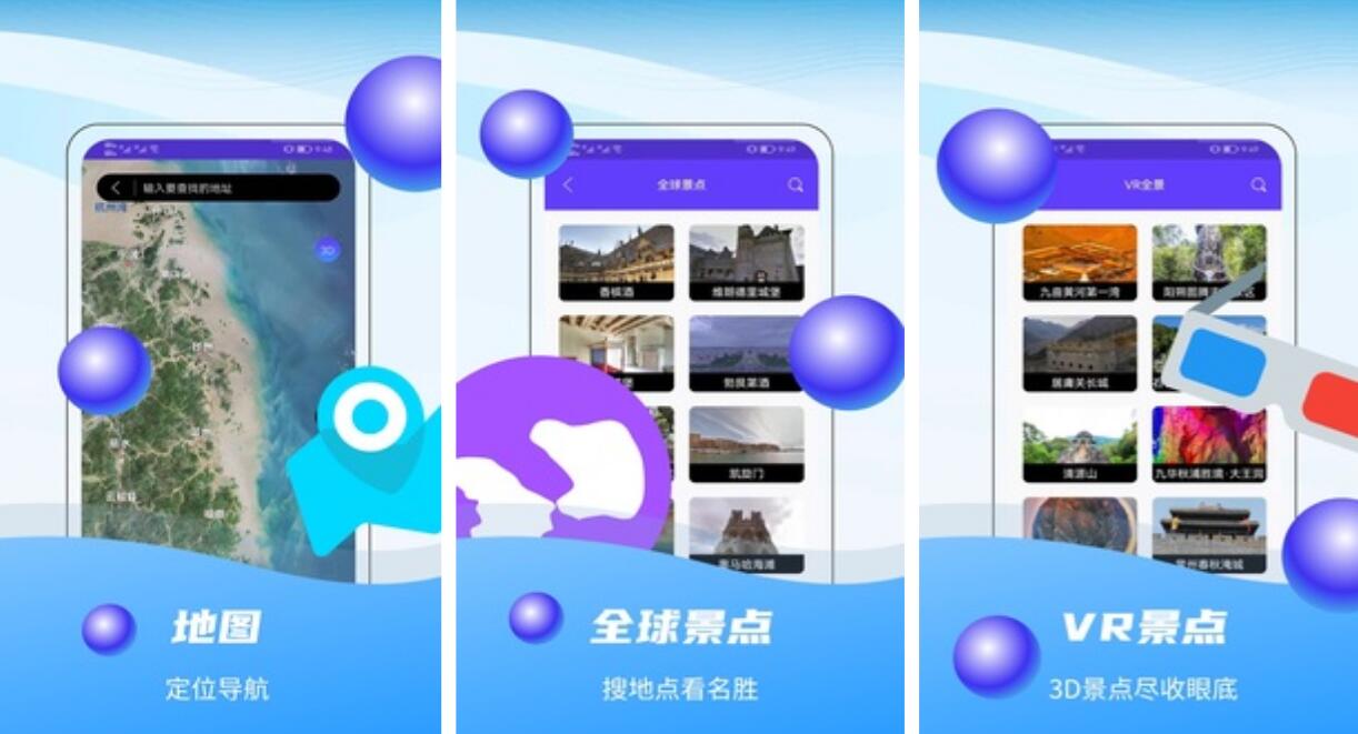 软件采用了近些年十分火爆的VR技术,将全球各地的美丽风光全部录入了进来,大家就算不离开家,也可以看遍各地的美景。应用内自带了一个精准的搜索引擎,用户将要去的地点输入进去,系统就会为你快速生成导航线路,你可以从多个方案中,选择一个最适合自己的使用。