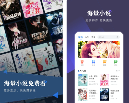 这款软件专攻网络流行小说,很多都市爽文、悬疑科幻小说,大量热门大神进驻,而且首页有齐全的小说题材分类,各种新奇爽点爽文,相信能满足你看小说的需求。