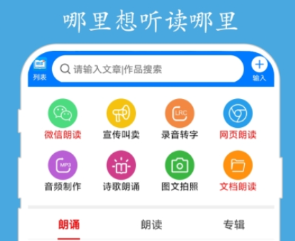 如果你需要听各种国家的语言或者不同地区的方言,下载朗读大师就可以解决这些问题。在应用中可以将多国的语言和方言进行朗读,而且功能非常的齐全,在页面上分类十分清晰,甚至还可以在应用中分享自己朗读的音频。