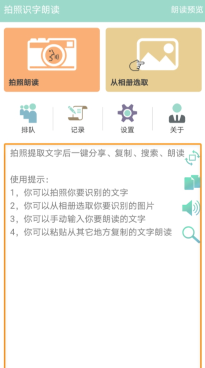 使用拍照识字朗读应用可以先将需要的文字进行拍摄,然后通过软件扫描照片,将上面的文字进行朗读。而且遇到不会读的汉字或者是不认识的单词,也可以进行拍照朗读。