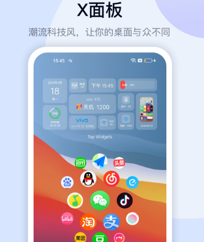 手机组件拥有独特优势,万能组件拥有众多功能,有丰富的组件库,一如既往的为小伙伴们提供强大的小组件功能,其中有非常简单的操作,包括删除、缩放,轻松编辑属于自己的个性化桌面及主题。可在手机上直接添加快捷启动键,比如扫一扫健康码、乘车码、微博热搜各种内容一键直达,精挑选手机桌面及小组件,打造独具特色。