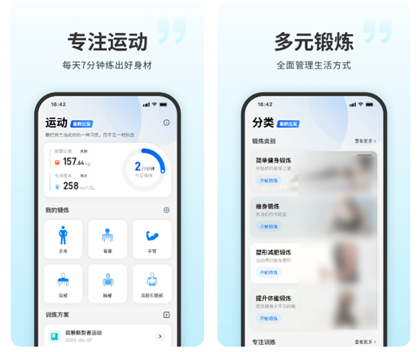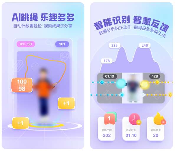 带有一系列的智能运动可以参与,比如说跳绳、腕力球等。通过与智能穿戴设备相连接,可以在运动健身时检测我们的各项身体指标,并且统计运动时长、卡路里消耗等在APP中显示。伴随使用天数的增加,就能够显著感受到我们体能的上升,软件还能够为我们推荐饮食餐谱,为我们全方位地塑造健康的身体机能。