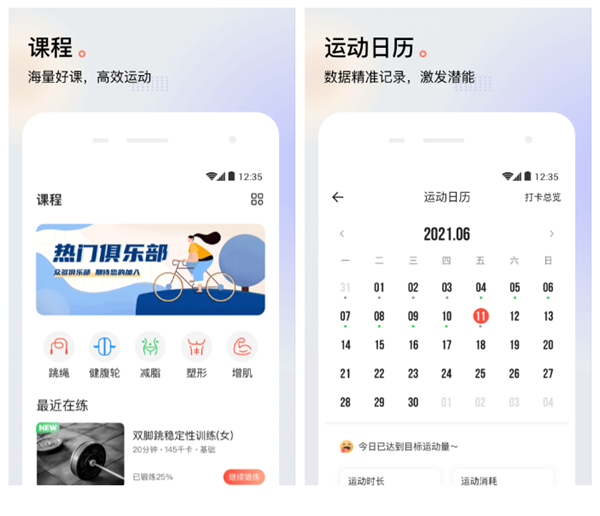 不管是室内还是户外运动都可以轻松搞定,平台中为大家提供了包括骑行、负重、跑步、瑜伽、球类等多种不同的运动健身课程,录入自己的身高体重以及空闲时间就可以自动为我们推荐相对应的运动项目和推荐运动时长计划,从而帮助我们快速提高身体素质。