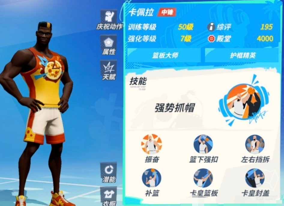 总之,卡佩拉是一位非常强大的中锋角色,他在内线有着无与伦比的篮板和盖帽能力,可以为球队提供稳定的防守和进攻支持。他的爆发技能也是非常霸气,可以抓帽任何对手的投篮或扣篮,甚至可以防止罗斯的爆发技。卡佩拉的缺点是速度慢,远投差,持球进攻差,防守范围小,所以他需要与其他角色进行合理的搭配,才能发挥出最大的效果。