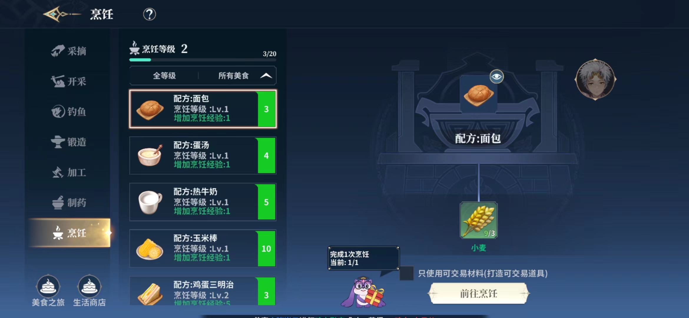 烹饪:这是最后一个生活技能,在游戏中需要大家去体验一下烹饪协会的剧情才可以解锁这部分的玩法,在上面大家可以看到一个烹饪锅,将自己收集到的各种原料食材放进锅中就可以获取美食,比如之前打击钓鱼钓上来的鱼类都是可以制作成美食的,后期大家的烹饪等级高一点的时候还可以做出豪华餐桌请其他的玩家一起来分享美食哦。