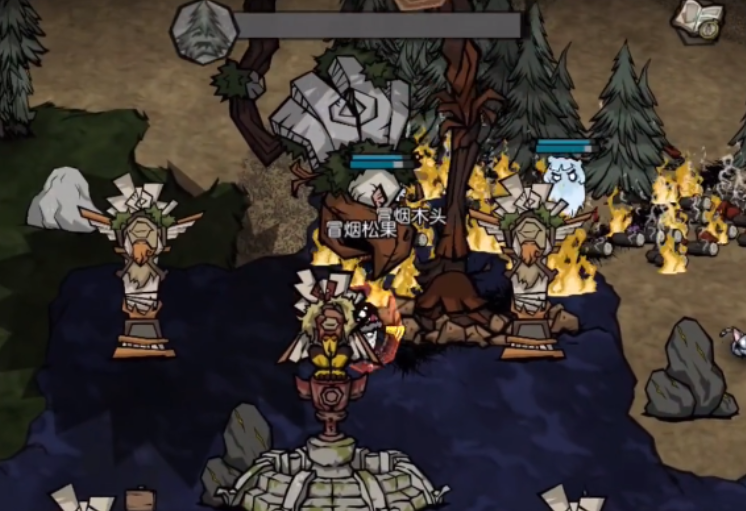首先玩家得先将岩石巨鸟召唤出来,岩石巨鸟非常隐蔽,一般不轻易出现。它就在四座雕像的位置,玩家可以在周围撒上很多的燃油,通过在妖魔岛上获得花瓣制成燃油涂在雕像上面,这就是第一步放置吸引的火种。