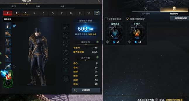 光有还不行,玩家需要将其拖入角色信息中原本空置的槽位中,才能将职业刻印激活,从而获取刻印的属性加成。