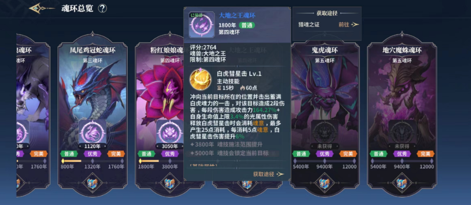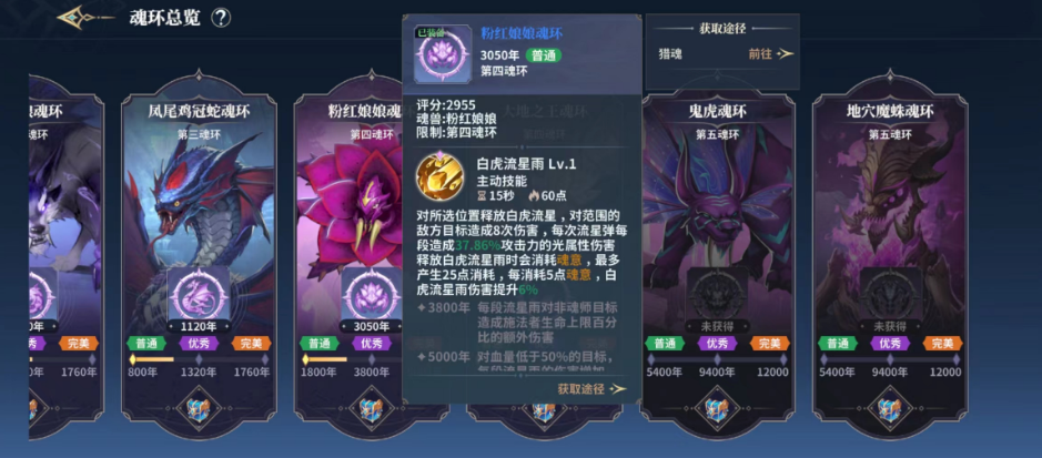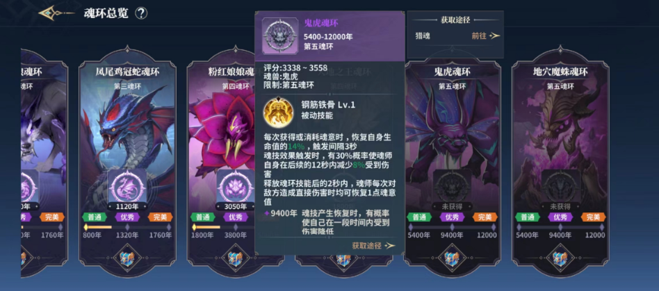 这也是第五魂环大家可以可以通过猎魔来获取的,这个魂环在评分上面其实会比上面的魂环稍微低一点,但是也比其他的魂环效果好,带来的效果则是给恢复上面带来加成,每一次在消耗混意的时候就会带来一部分的生命恢复效果,就算不是消耗魂意,大家获取魂意也会有相应的效果,虽然是少量的恢复,但是触发的时间间隔很多,适合一些爆发强但是血量危险的魂师使用,后期针对大家需要魂意的魂师还有魂意加快恢复时间的效果,这一点也是比较适合白虎使用的。
