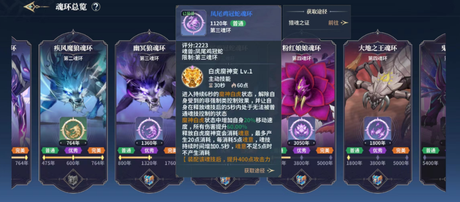 相比以上的魂环而言,这个魂环也是比较好拿到手的,除了战斗效果带来的额外加成之外,在移速上面也会有加成,这一点可以帮助大家在战斗的过程中灵敏的避开敌人的范围输出,要是使用魂意带来技能输出的话,有这个魂环的加成,每一次技能输出的时间上面都会有一定的延长,当然在本身魂意不多的时候是不会产生消耗的。