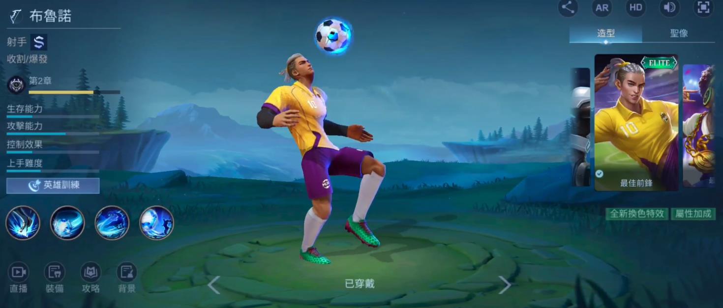 飞铲(2技能):布鲁诺向前一滑,将敌人击飞,并将其击晕一小段时间,并将其击杀。这一招,不但可以让布鲁诺去追击,也可以让他在遇到危险时,有一条逃生之路。在实际比赛中,我们可以通过一个飞铲来将重球打回来,从而维持一个连贯的进攻节奏。
