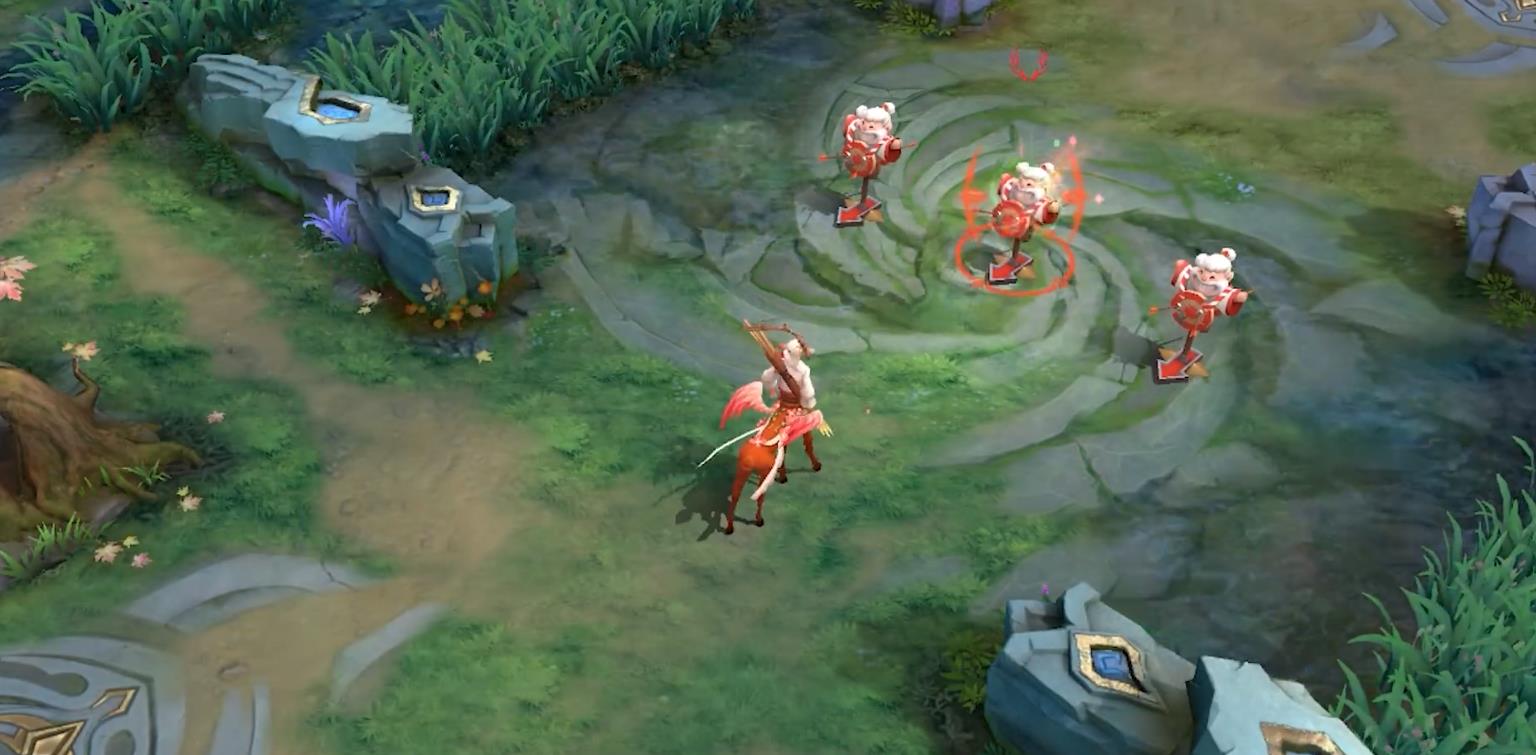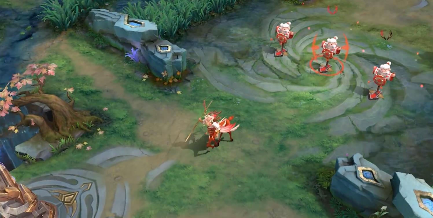 利用雁引长空(1技能)的远程优势,尽可能地消耗敌人的血量,让敌人的血量保持在一个比较低的程度,这样就能安全地推进,拆塔,就算敌人的打野想要 gank,因为队友的血量太少,也不会造成太大的威胁。