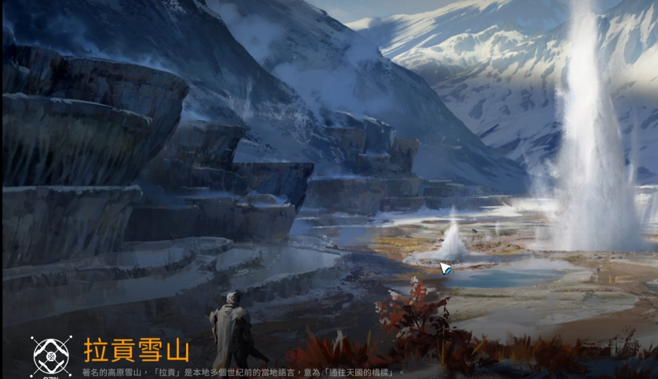 所以物资的分布点就很重要,每一个地图都会有各种可探索的区域,大多数的玩家会通过接收委托任务来进行探索,因为这样可以一举两得,其中在拉贡雪山地图里雪山可探索的区域是最大的,进入雪山后的位置是在入口处的左下方,沿着入口往上走一段时间就可以看滑雪中心,这是第一个出现的物资探索点,在滑雪中心的左侧其实还有两个比较小的探索点,然后沿着左上方行进,这里是迷谷,此处的左手边有一个探索点。