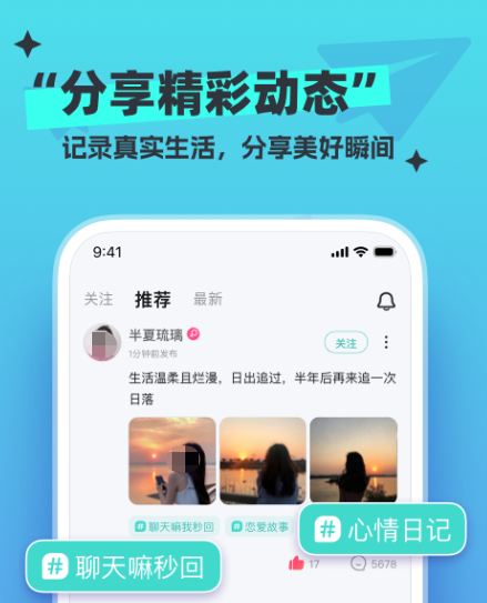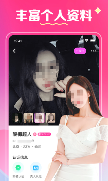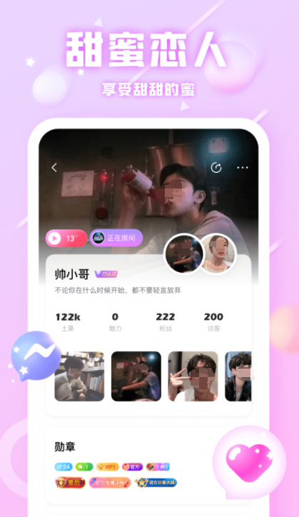 海量活跃用户寻找爱的波动,用户有个性化展示主页,可以在自己的社交广场发自拍照、唱歌音频以及个性签名文字等,展现不一样的自我寻觅知己。