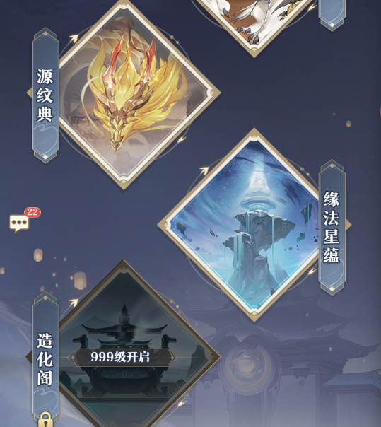 源纹典,源法星蕴,诸天圣宝录这三个是比较进阶型的玩法了,玩家们需要花费材料来对宝物进行升级,升级后的属性也都将增加在战斗队伍当中,不同于【群星之力】,玩家们在招募中获得的碎片对源师进行强化后,就可以在此玩法里得到升星机会,获得后就可以在技能树中进行强化,也不在需要其他材料!