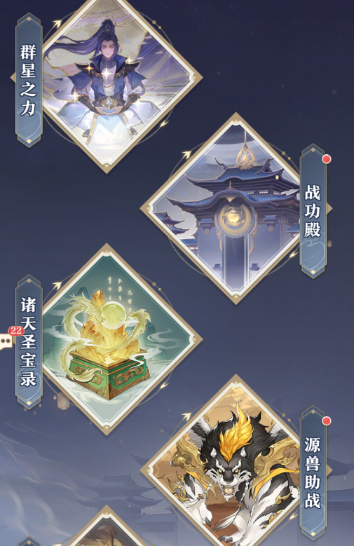 助战玩法中一共包含了七种玩法,分别是【群星之力】【战功殿】【诸天圣宝录】【源兽助战】【源纹典】【源法星蕴】【造化阁】,除了造化阁开启的条件比较苛刻之外,需要玩家们等级达到999级的时候才会开启,其他的玩法都是比较简单的,而且可以给玩家们轻松带来大量的属性加成;