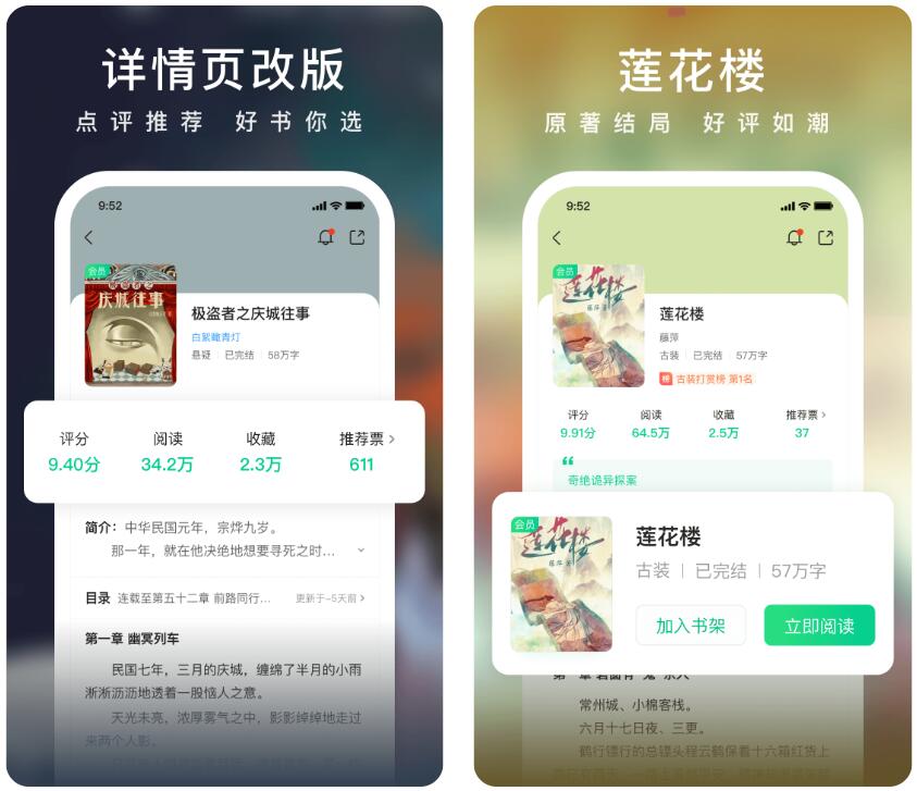 在选书的过程当中,大家可以直接进入到详情页中获取更多内容,感兴趣即可快速加入到书架当中。而应用内也为大家提供了丰富的原著小说,用户在阅读功能当中还可以随时进行阅读偏好方面的设置。