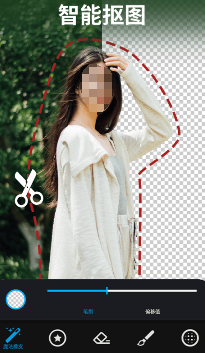 这是一个可以让用户零基础0门槛学习抠图p图的创作工具。具有发丝儿级别的抠图效果,以及图片儿视频抠图功能。当然也可以轻松的更换照片背景。通过艺术滤镜将照片背景秒变天空。最主要的是大家想要擦除照片中误入抢镜的路人,这里不仅有抠图更有橡皮擦,可以将这些多余的路人甲擦除掉。